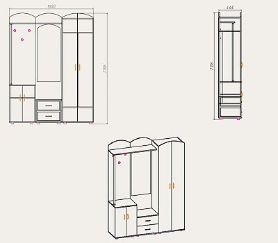 Габаритные размеры: ширина 1600мм; высота 2106мм; глубина 445мм.